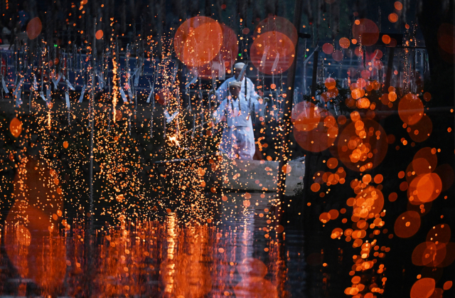 함안 낙화놀이는 독특한 불꽃놀이 방식으로 많은 이들의 관심을 끕니다. 숯가루와 광목 심지를 한지로 정성껏 싸서 제작한 낙화봉을 사용하는데, 이를 무진정 주변에 설치하고 불을 붙이면 바람에 흩날리는 불꽃이 마치 하늘에서 꽃잎이 내리는 듯한 장관을 연출합니다. 특히, 전통복 차림의 보존회 회원들이 뗏목을 타고 낙화봉에 불을 붙이는 장면은 놓쳐서는 안 될 아름다운 순간입니다.
