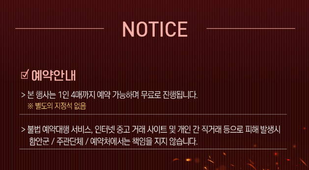 올해 함안 낙화놀이는 YES24 티켓 사이트에서 간편하게 온라인 예약이 가능합니다. 전국 어디에서든 예약이 가능하며, 2025년 3월 26일(수) 오전 10시부터 예약이 시작되었습니다. 한 계정당 최대 4명까지 예약할 수 있으며, 방문객은 예약 확인용 QR코드를 현장에서 제시하고, 반드시 캡처본이 아닌 원본을 지참해야 합니다. QR코드를 확인하면 손목띠를 받아 축제장에 입장할 수 있습니다.